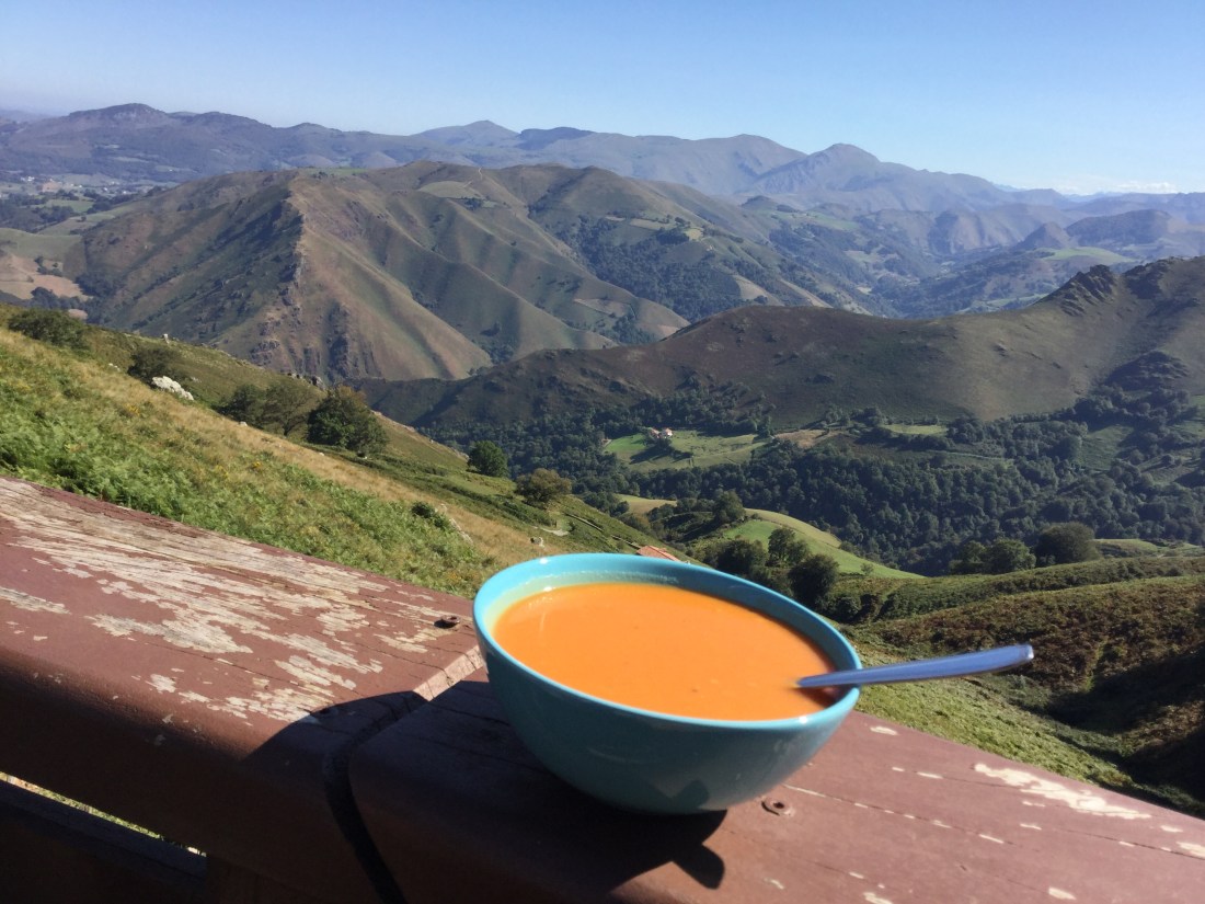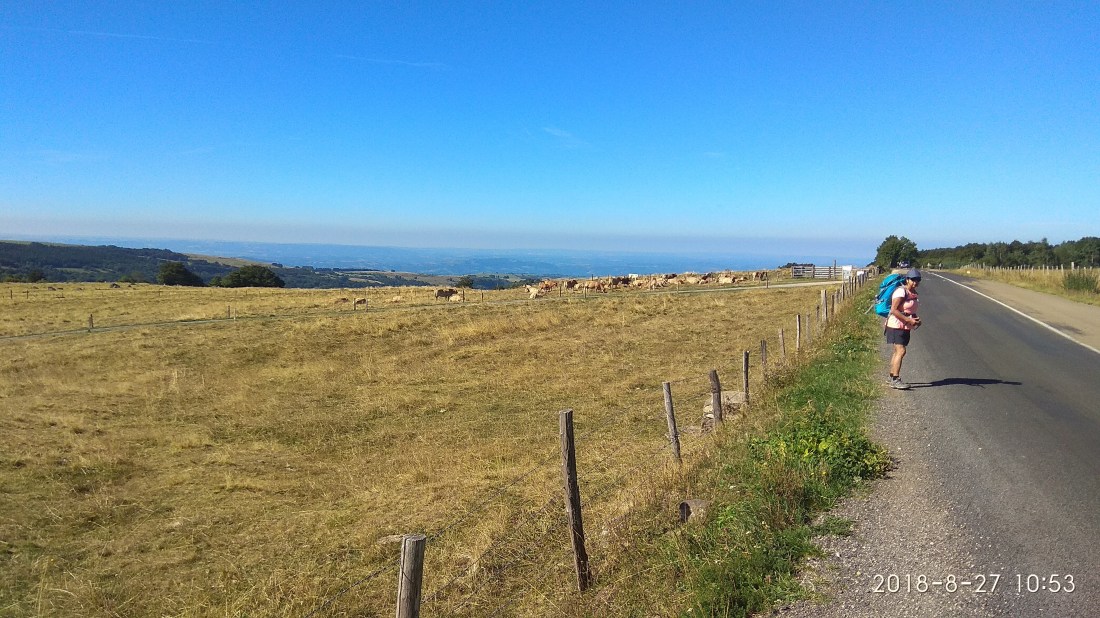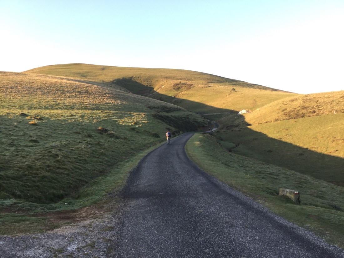 Juga yang tak terlupakan adalah dua hari melintasi pergunungan Pyrenees pada perbatasan Perancis-Spanyol, mendaki dari ketinggian 200 meter sampai di atas 1400 meter, kami mengikuti sederetan peziarah satu-satu, dua-dua, yang mendahului kami. Di lereng gunung yang tercukur habis, dititiki domba, sekali-sekali kuda, dengan pemandangan jauh sampai ke ufuk. Rasanya seperti berjalan di atap dunia!