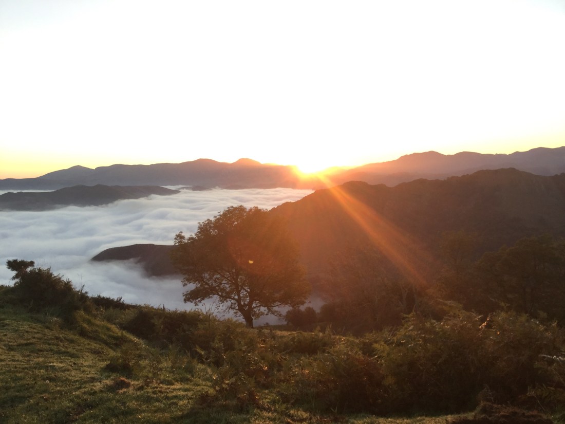 Bapak pensiunan Korea Selatan yang berdiri di atas bukit Alto de Perdon (Puncak Pengampunan) menikmati pemandangan yang luar biasa cantik sambil menyanyikan spontan lagu Kristen ‘How Great Thou Art’ (“Bila Kulihat Bintang Gemerlap”) dalam Bahasa Korea, merangsang saya spontan juga menemaninya menyanyi walaupun saya dalam Bahasa Inggris.